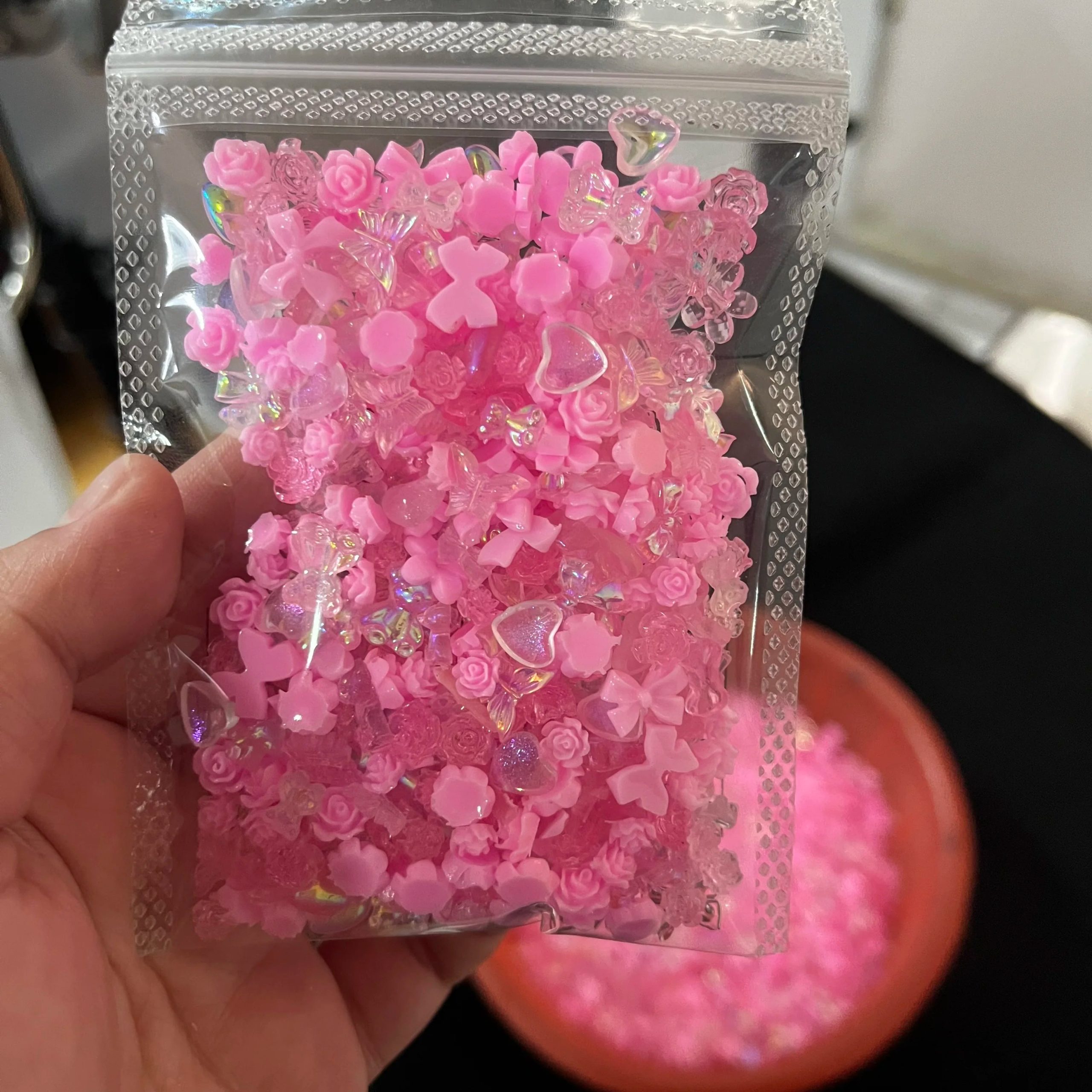 Elevate your nail art game with our charming collection of 50g 500-600 pieces of mixed nail decorations. Perfect for adding a touch of kawaii style to your nails with delightful pink bowknots, heart shapes, bears, and butterflies — ideal for Valentine’s or any occasion!