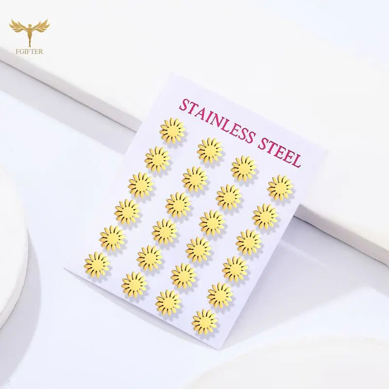 Sun Flower Stud Earrings – Kawaii Stainless Steel Jewelry for Women